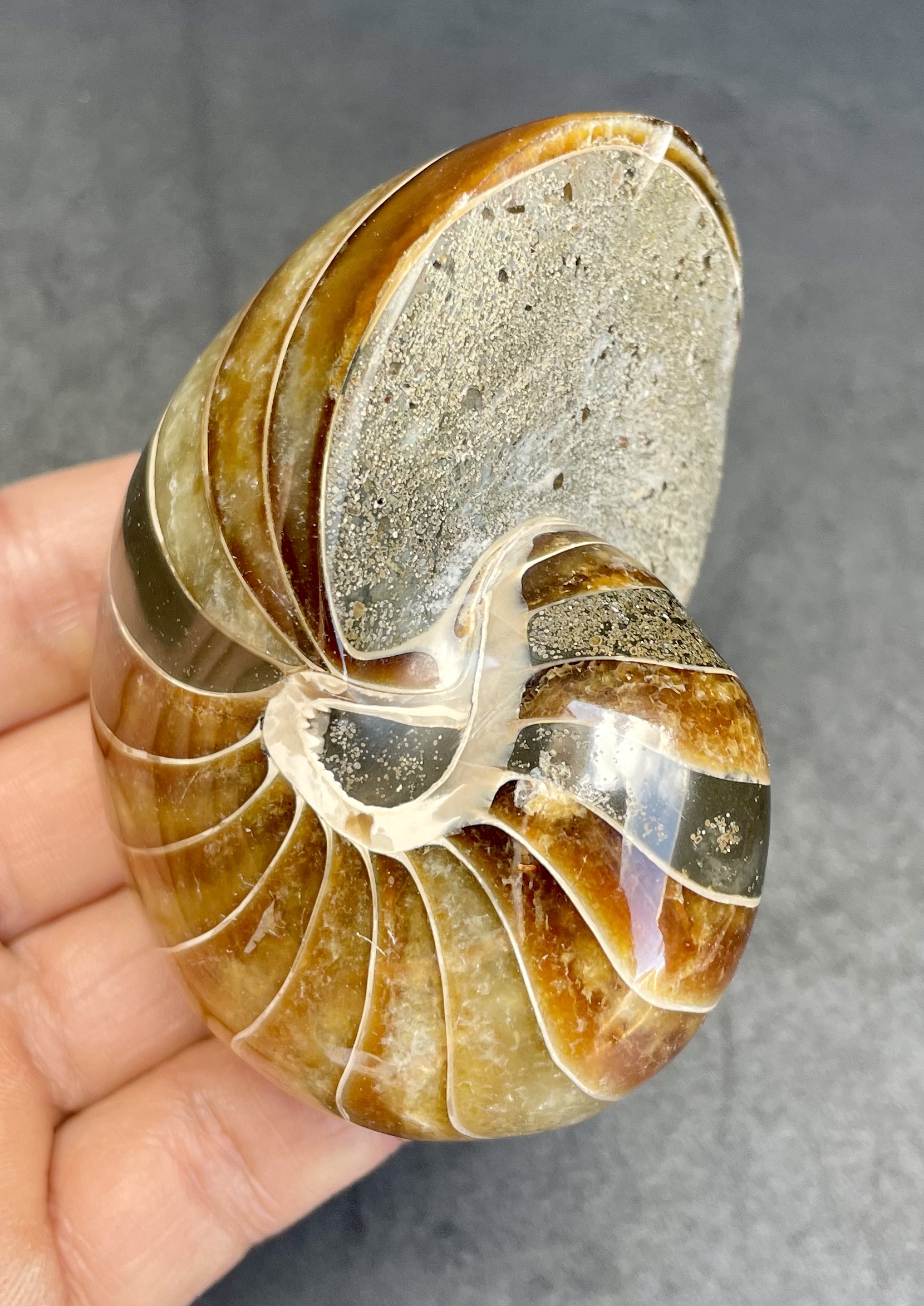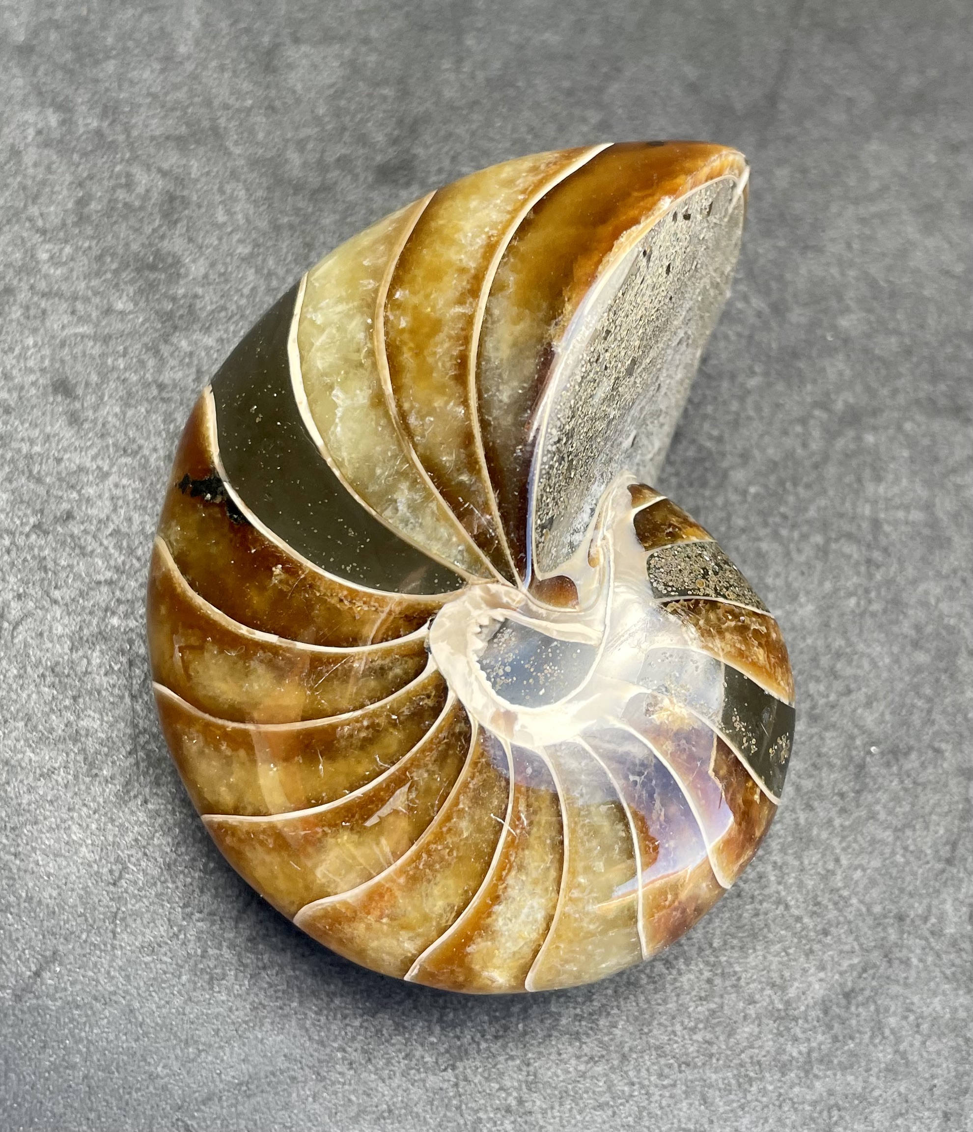A fossilized nautilus shell from Madagascar.