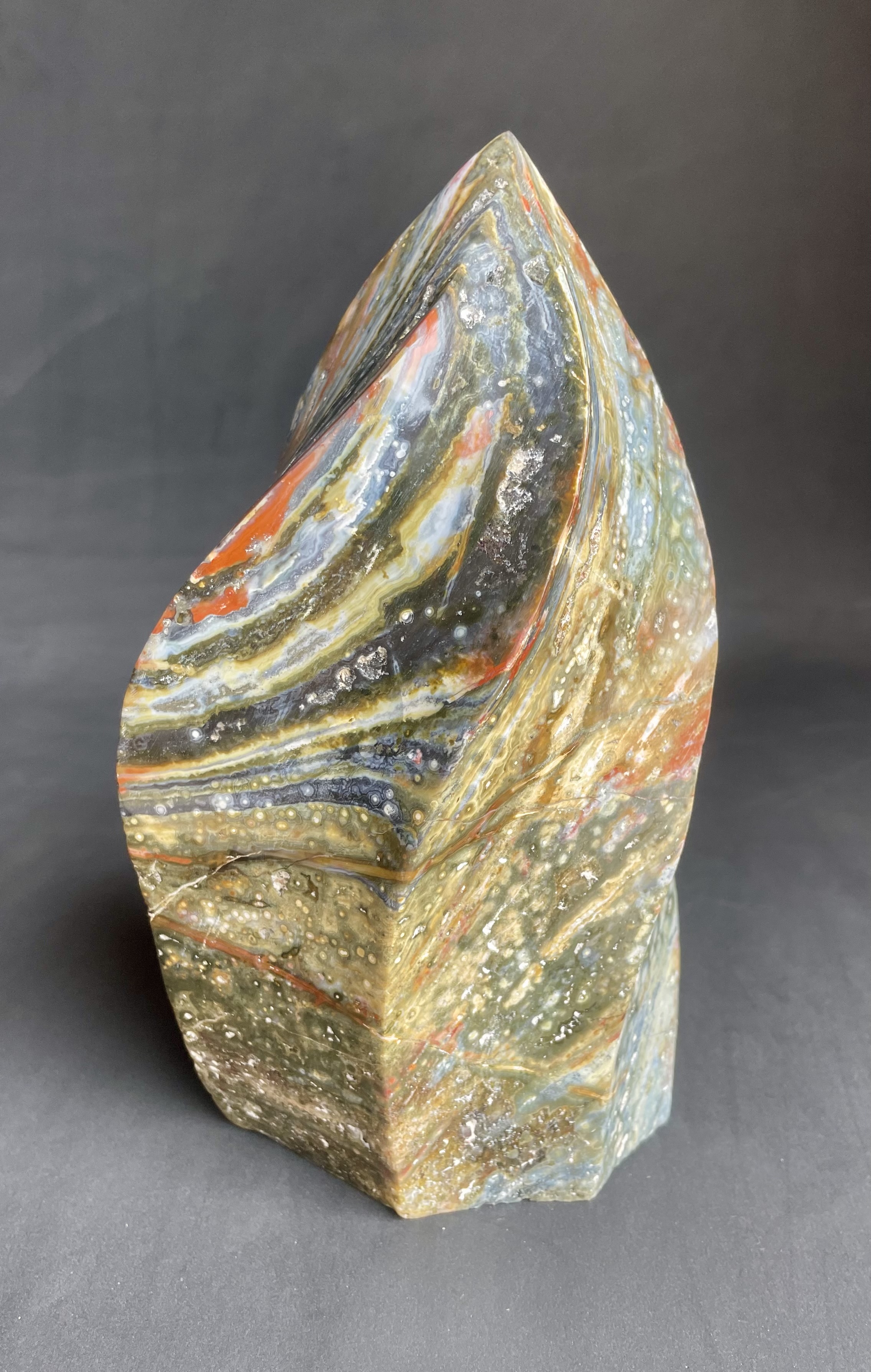 Embrace the soothing, joyful energy of the Ocean Jasper Flame and let it light up your environment. Whether you’re starting your collection or searching for that perfect piece that speaks to you, the Ocean Jasper Flame is more than a mineral—it’s a piece of the vast, mysterious ocean, ready to share its stories and beauty with you.